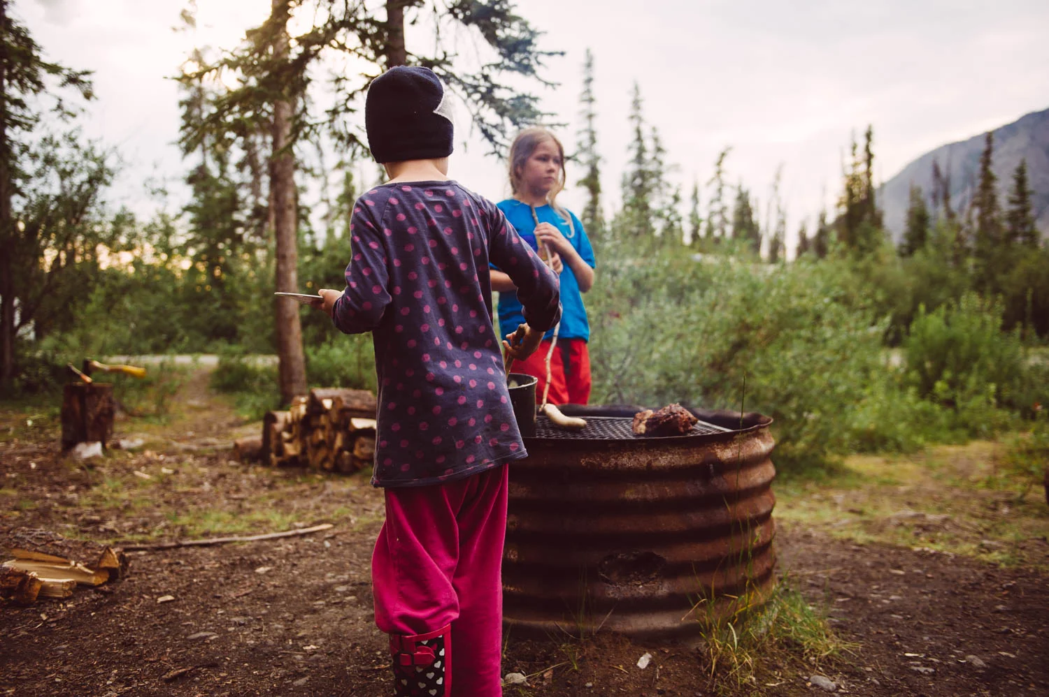 As it is often the case in the Yukon, there was a bear hanging around the campground. One evening, we saw it right there where Aïsha was (less than 20 feet from the fire). We warned the kids to stay together. They just waved and said they knew what to do if they encountered a bear. Yukon kids...