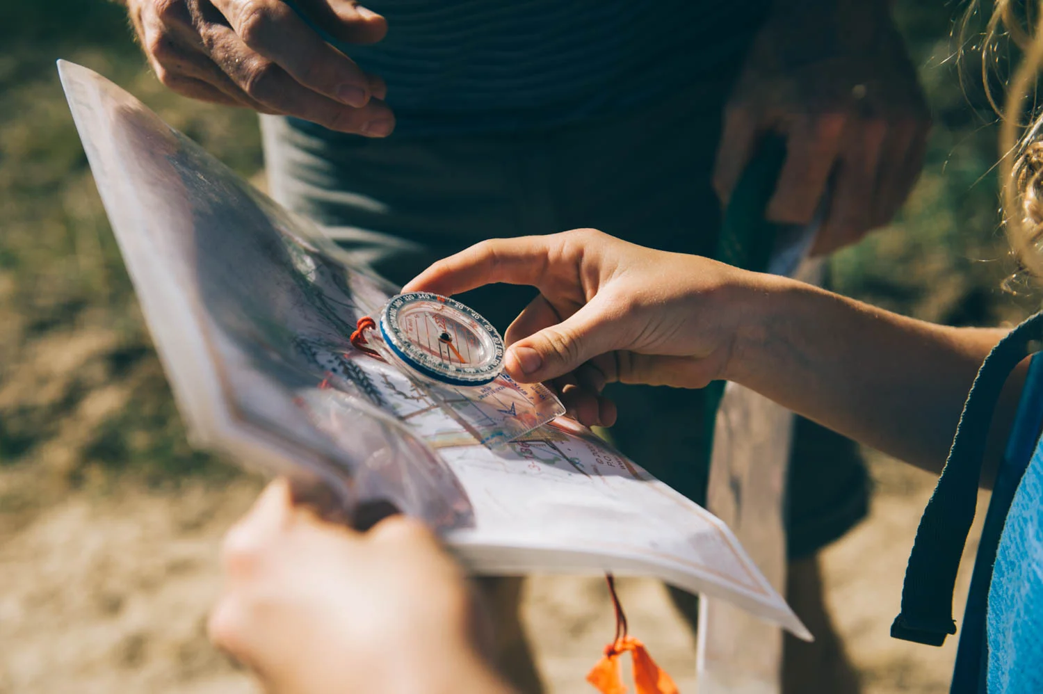 Friday night, JF taught the kids how to read the map and use the compass for orienteering.