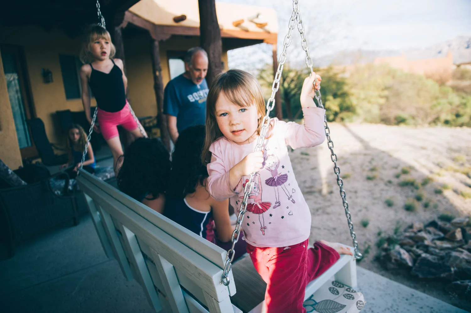 We went to spend Saturday evening with this cutie and her family (Karl's sister's family), sat outside and watched the full moon rise over the Catalinas and washed our (very, very dirty) climbing ropes in their bathtub.