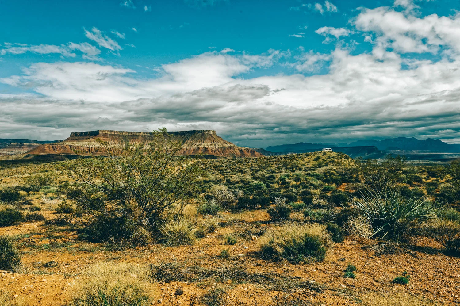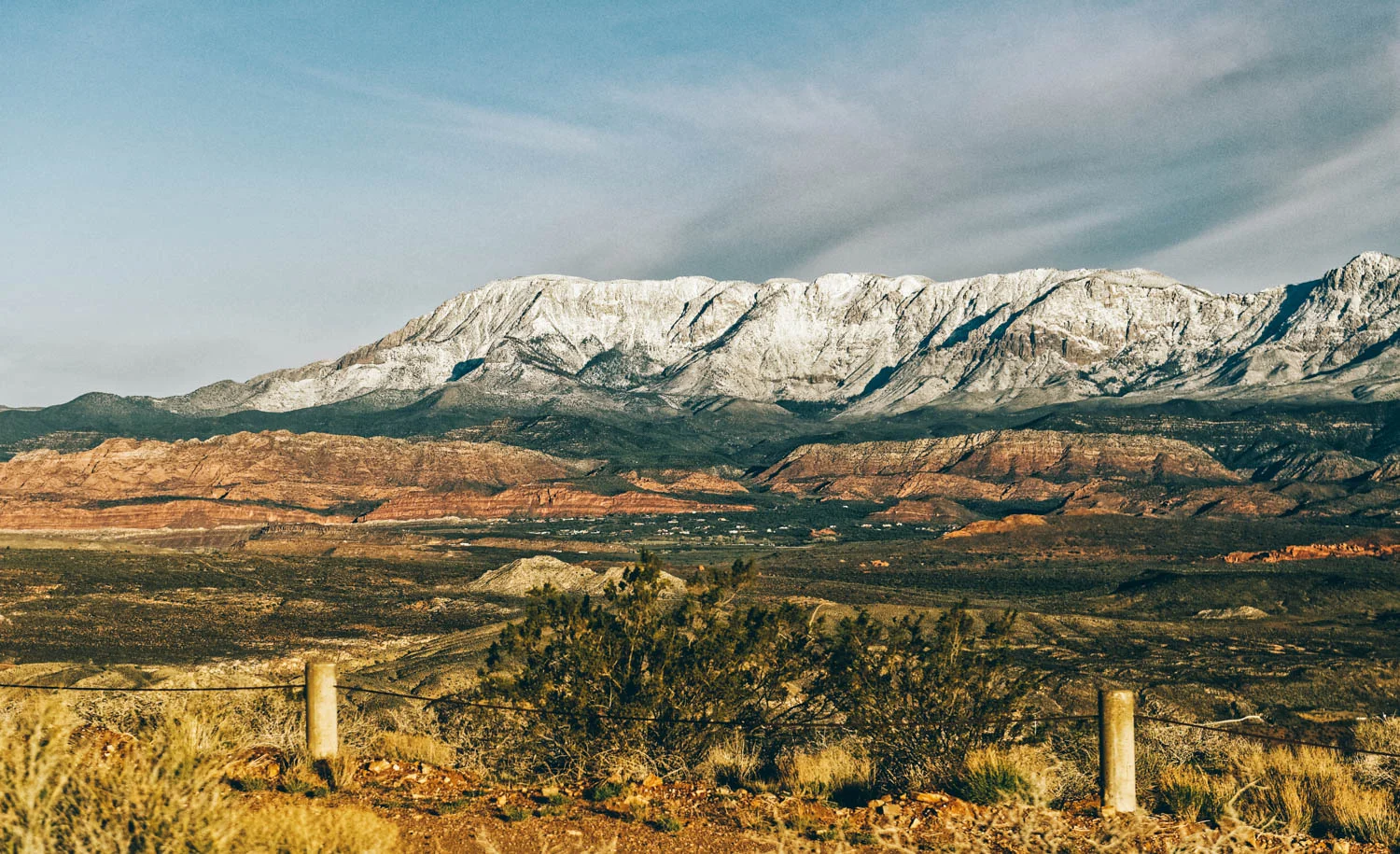 Can you see? Snow covered mountains on the left and Flying Monkey Mesa on the right.